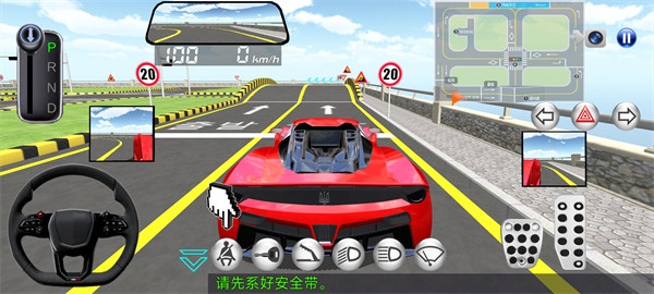 1、进入驾驶场景后,点击左下角的安全带图标系好安全带,然后按提示启动车辆。