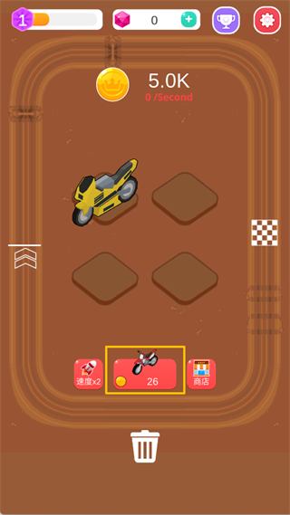 进入【商店】可以购买更高级的车辆,或使用宝石解锁赛道收益加成。