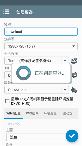 1、安装启动器后,点击右上角的“+”号创建新容器。