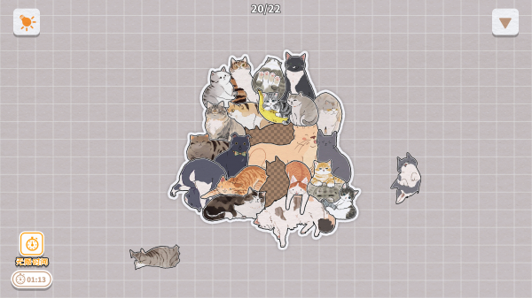 2、在拼图模式中,游戏会提供一个完整的模型,玩家需要根据每只猫咪的特点,将其正确放置到相应的位置上。