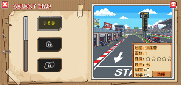 4、比赛开始后即可体验像素风格的竞速乐趣,完成各类赛道挑战。