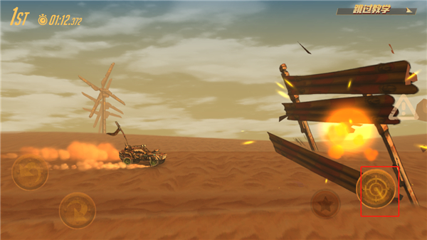4、被击毁的敌车会重生继续追击。此时可点击“地雷”按钮,在车后布设地雷,有效打击尾随对手。