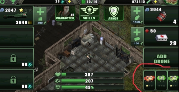 这些奖励能帮助你迅速提升到9级,几乎不需要太多的肝活。如果第二关的奖励比较差,建议重新安装游戏。人物界面右下角有三个芯片插槽,我个人的配置是一个红色和两个绿色芯片。红色芯片提升血量,绿色芯片提升攻击力。血量可以保持在400左右,基本足够。