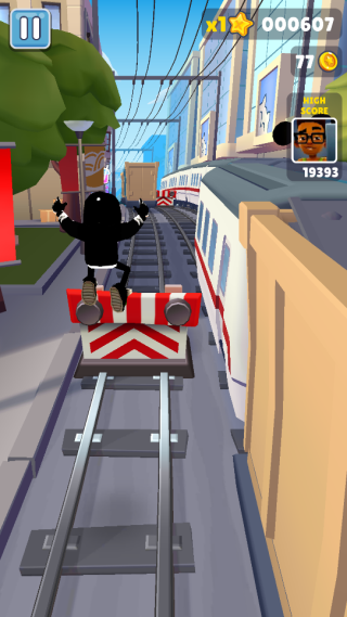 1、操控角色在疾驰的地铁轨道上奔跑,灵活躲避迎面而来的列车,同时尽可能多地拾取独特的黑色金币。