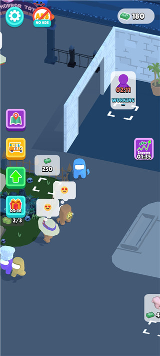 2、照顾怪物,卖门票:玩家需要照顾好怪物,同时通过卖门票赚取游戏中的货币。