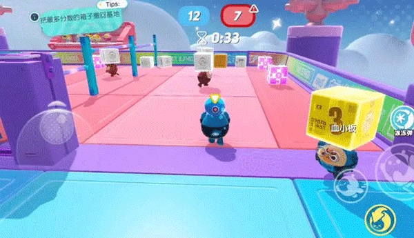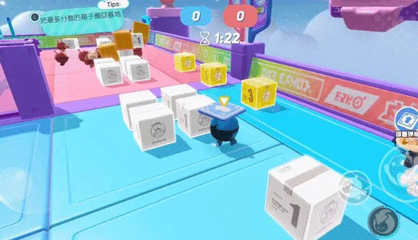 在搬箱子类积分赛中,场地常设有高跳道具。建议快速布置道具,提升己方搬运效率。同时可主动前往对方区域干扰——扔道具、推蛋仔,甚至直接拿走对方方块转化为己方分数。