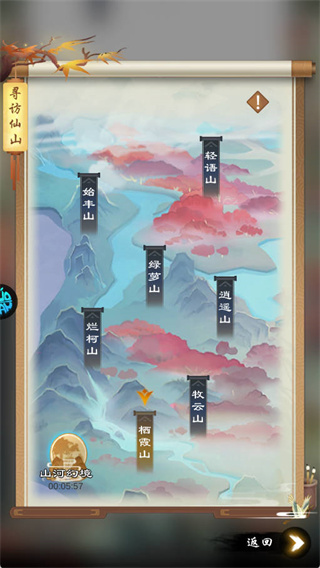 6、在仙山列表中挑选目标地点,确认后即可踏上探索之旅,每座仙山都蕴藏独特机缘与挑战。