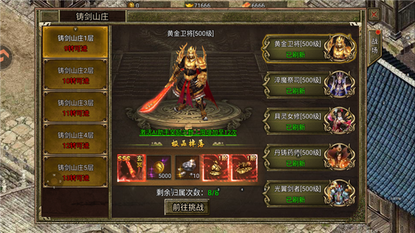通过挑战铸剑山庄的层数扫荡玩法,玩家有机会直接入手顶级武器【SSS·玄冥之剑】,是当前阶段不可错过的核心装备来源之一。
