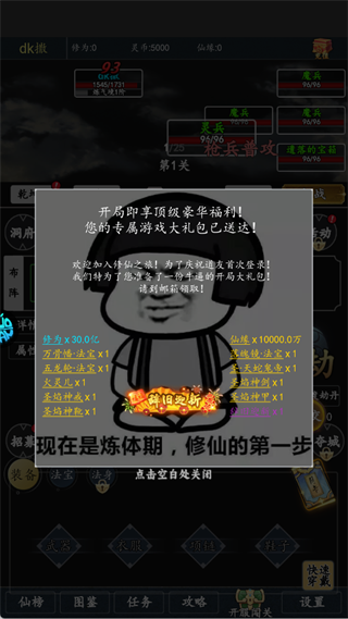 首次登录会自动弹出开局福利窗口,内含30亿修为及多件法宝、伙伴等超值奖励。关闭弹窗后,可前往邮箱一键领取,助力快速起步。