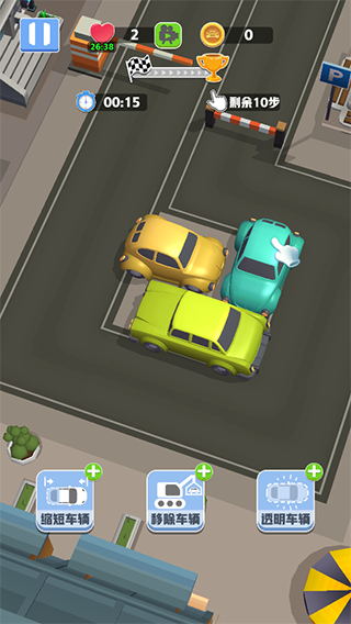 3、通过滑动屏幕控制车辆前后移动,为关键车辆腾出通路,最终让目标车辆驶出停车场。