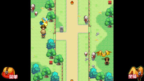 战斗胜利后获得第二个勋章,出了道馆女主会送给玩家第一个坐骑陆行鸟,这时候左边的地图可以去了,里面有火系的特殊宠物可以捕捉。