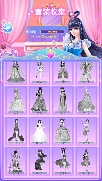 - 在收集界面中,可查看套装、神兽、仙子小屋等各类物品的收集进度;