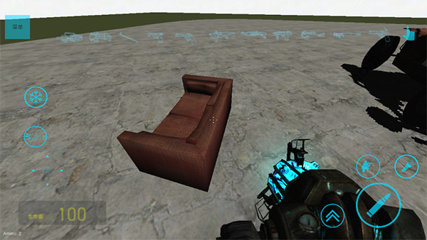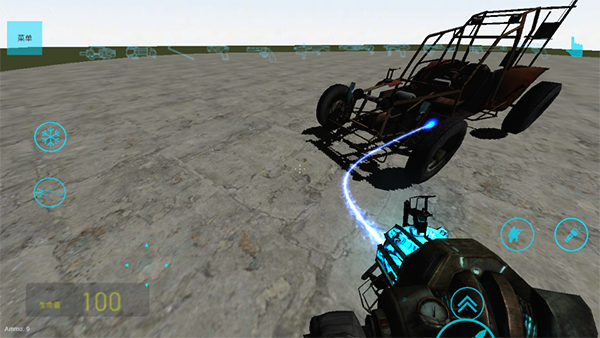 4、默认武器用于移动物体:选中目标后,长按开火键锁定,保持按住状态并滑动按钮即可拖动物体。