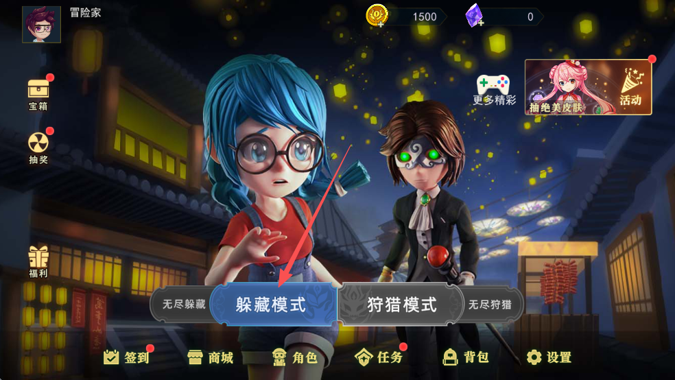 - 打开游戏,点击进入【躲藏模式】;