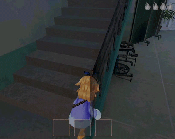 - 沿着楼梯扶手蹲着前进,全程必须保持蹲姿;