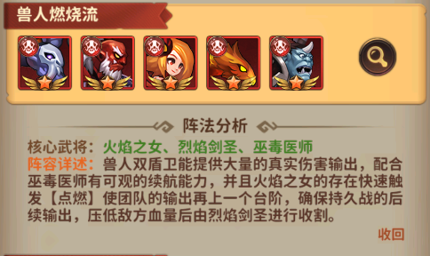核心武将:火焰之女、烈焰剑圣、巫毒医师