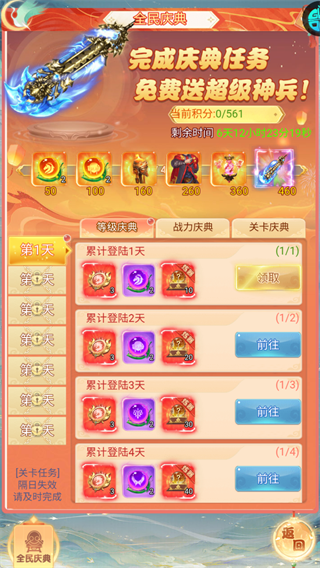 5、参与盛世庆典,完成挑战即可免费拿绝世神兵