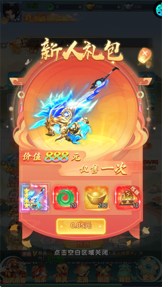 花0.05元拿下价值888元的新人礼包,能直接获得强力武器和资源,性价比极高。