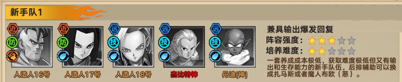 阵容构成:人造人16号+人造人17号+人造人18号+杰比特神+丹迪