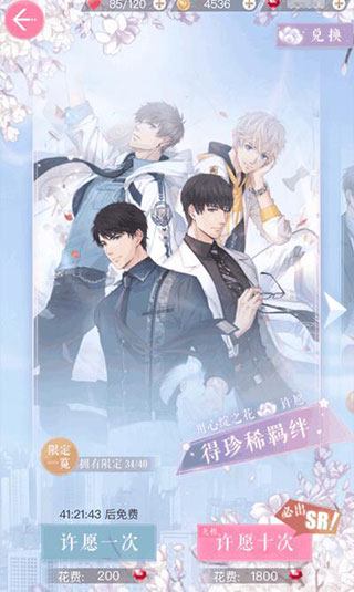 提供两种抽卡方式:①钻石抽卡——48小时免费一次,十连必出SR;②金币抽卡——24小时免费一次,有机会获得珍稀羁绊碎片。点击【限定一览】可预览当前卡池内容。抽卡所得【心绽之花】与【心绽之瓣】可在右上角【兑换】处换取指定羁绊。