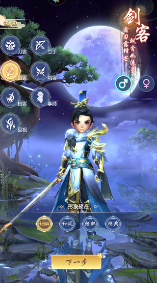 1、进入游戏后,首先选择心仪的角色职业,角色外观支持高度自定义,打造专属侠客形象。