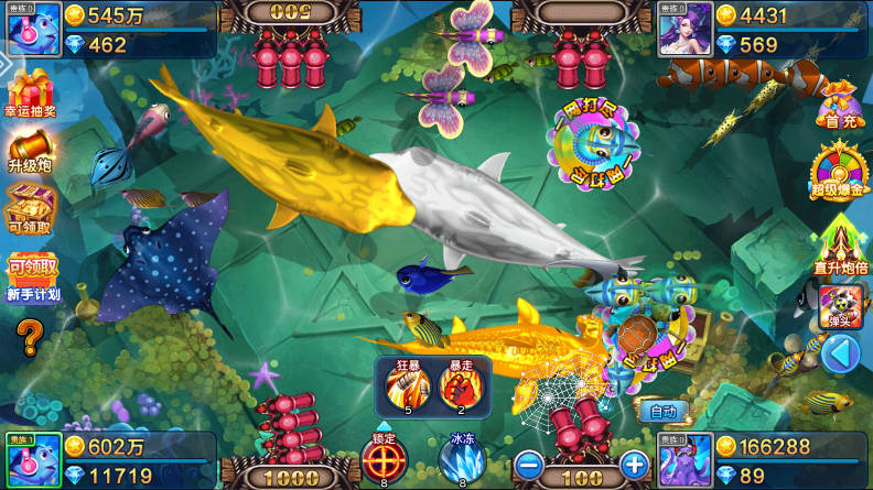 4、不同鱼类价值各异,大型鱼虽难以捕获,但一旦成功,奖励往往成倍增长,值得投入高倍炮弹冒险一试。