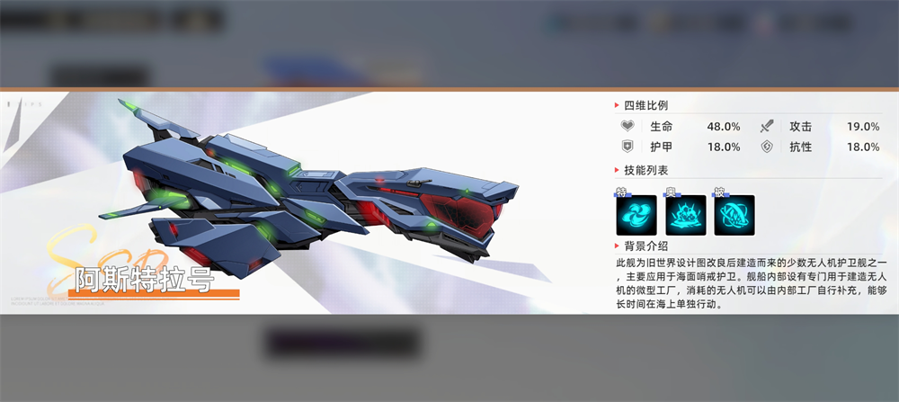 基于旧世界设计图改良而成的无人机护卫舰,专司海面哨戒与护卫任务。舰内配备微型无人机制造工厂,可自主补充消耗的无人机,具备长时间独立执行任务的能力。