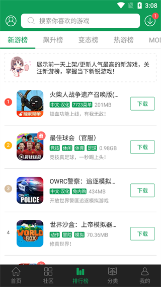 实时更新新游榜、热游榜等榜单,直观呈现当前最受欢迎的手游,帮助玩家快速掌握流行趋势并获取下载入口。