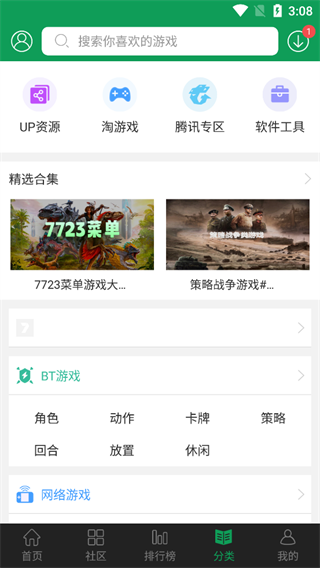 按类型精细划分游戏资源,包括BT游戏、网络游戏、动作游戏、策略游戏等,同时推荐精选合集,便于用户高效发现优质内容。