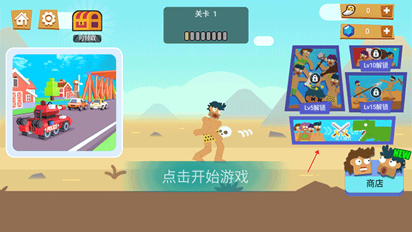 1、首先下载并安装野蛮人大乱斗,打开游戏后即可开始体验。主界面右侧提供多种游戏模式,需达到对应等级方可解锁;左下角设有商店,可购买新角色与武器,自由切换搭配,打造专属战斗风格。