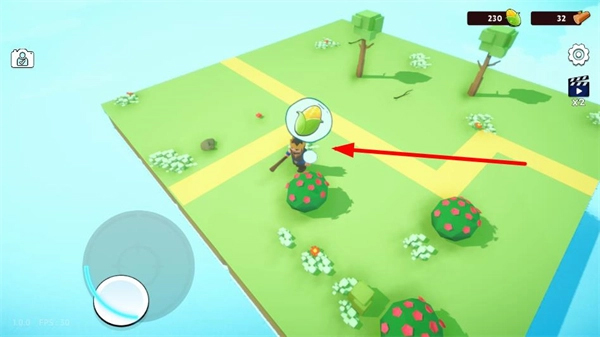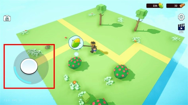 1、进入游戏主界面后点击“开始游戏”,使用左侧虚拟摇杆控制角色在浮岛上自由移动,探索可开发区域。