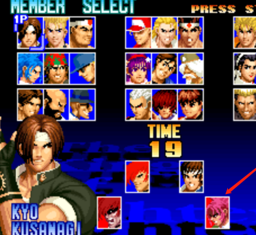 2、选中觉醒莉安娜后,在选人画面按住Start键,依次输入方向键↑←↓→↑↓,再按下B+C键。此时真大蛇队将解锁出现,即可正常选择使用。
