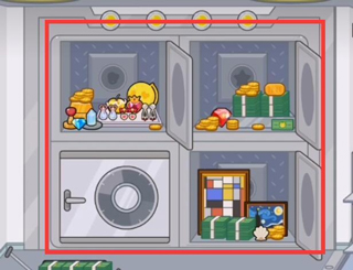 进入银行二楼,打开保险柜,按照提示依次找到钻石、红心、星星和贝壳图案,并按顺序放入对应位置,保险柜便会开启,内含丰富宝物。