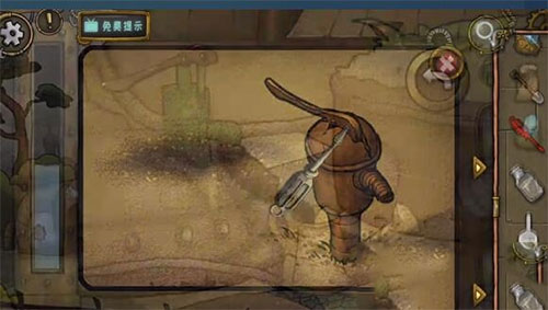 6、前往前院,点击右侧空地上的装置,用螺丝刀拆下其把手,再用铲子挖掘后方黑色土壤区域。