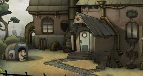 15、点击右侧机器,打开箱门,按图示正确摆放齿轮后拉下拉杆。最终房屋升空,游戏圆满结束。