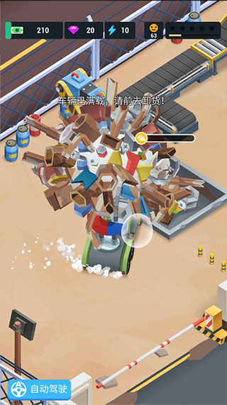 2、通过拖动屏幕控制运输车辆,在地图上收集各类废料;