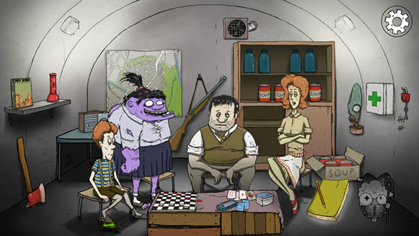 提米卧室:多见跳棋、纸牌、书、公文包、锁、手电筒、收音机、防毒面具、罐头、水。