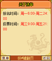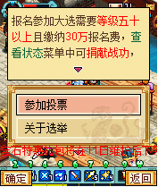 在规定报名时间内点击“大选报名”,系统将自动扣除30万金币作为报名费用。具体报名与投票时间可在“关于选举”中查看说明。