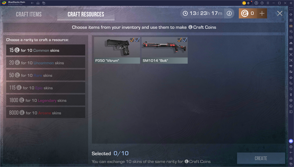 ① 将皮肤转换为制作币:每10个相同稀有度的皮肤可兑换一定数量制作币。普通皮肤兑换较少,而史诗、传奇、奥术等高稀有度皮肤则可获得更多;