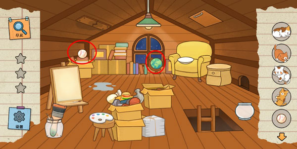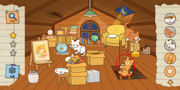 4、打开屋顶让月光照射到沙发,会出现一块奶酪;将奶酪放在老鼠洞口,会吸引一只猫咪前来。