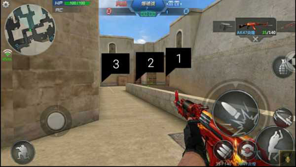 图中标注的两处为远距离对枪常见卡点位,建议由狙击手驻守,发挥射程与精准优势。