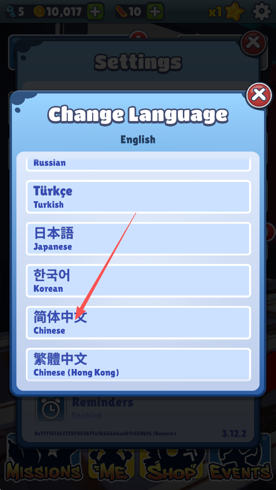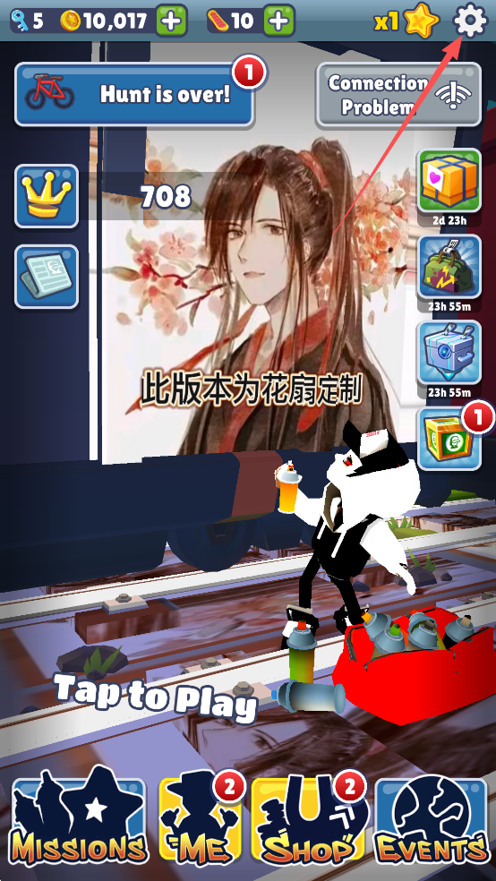地铁跑酷花扇魔改版怎么设置中文?