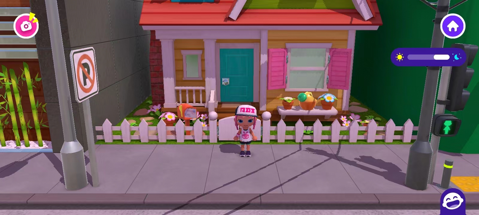 4、点击右上方的时钟按钮,可以切换白天与黑夜;左上角的图标可以进行拍照,与亲朋好友炫耀自己的服装,还可以捕捉在游戏中的神奇时刻;