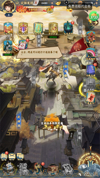 主城提供招募、神兵强化、商城、坐骑系统和日常任务等多种功能模块,全方位提升养成效率与整体战力。