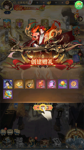 一键领取创建赠礼,快速获取武将与元宝,为前期养成打下坚实基础。