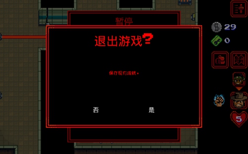 2、选择“退出游戏”,在弹出窗口中勾选“保存现有成就”并确认,即可完成手动存档。切勿强制关闭应用,否则可能导致进度丢失;