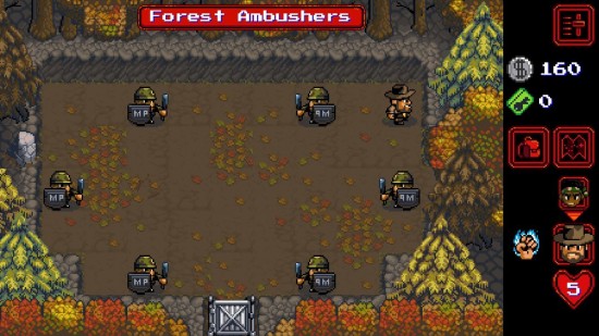 Boss战技巧:先用棒球角色打掉盾牌,再推动上方重物压住铁板,最后将光头敌人击晕于铁板上即可通关。