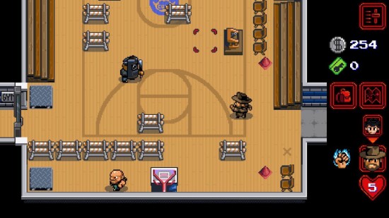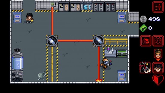 游戏初期操控“胡子牛仔”探索大楼,满血状态下可释放特殊攻击(如疾冲拳)。随后加入的弹弓黑人角色至关重要,其远程能力是开启激光门、触发机关的关键。
