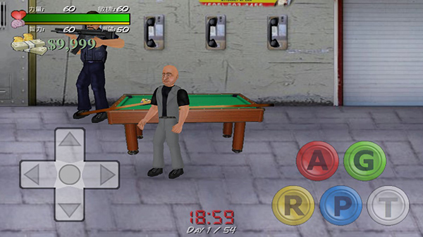 6. 如图所示,主角已登场,你可以操控其移动并施展各种暴力手段。