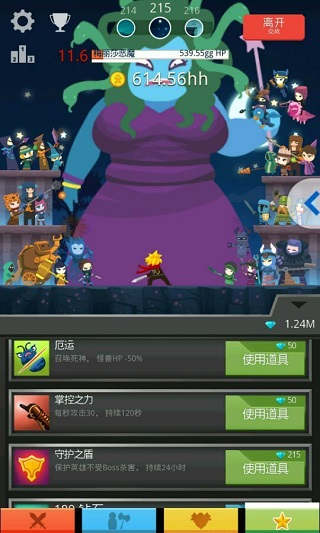 点杀泰坦最新版是一款休闲点击RPG手游,采用手绘欧美卡通风格,画面清新,角色可爱且比例协调。配乐轻松明快,节奏分明。游戏提供丰富的成长体系,包括属性提升、场景解锁、队友招募与技能升级,为玩家预留广阔的进阶空间。